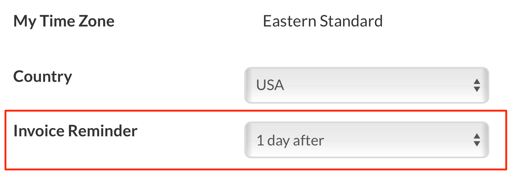 Find the Invoice Reminder option.
