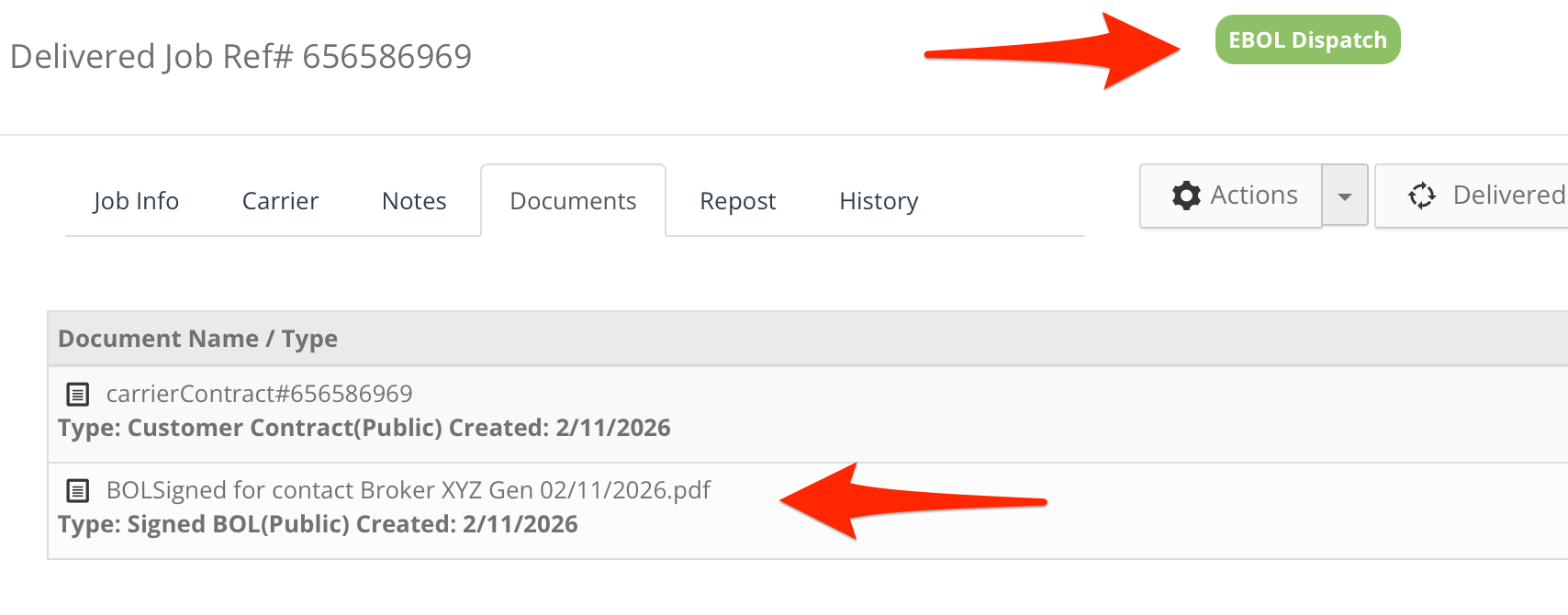 Also you can check all delivered jobs with Signed eBOLs on the job side under filter Ready To Pay: