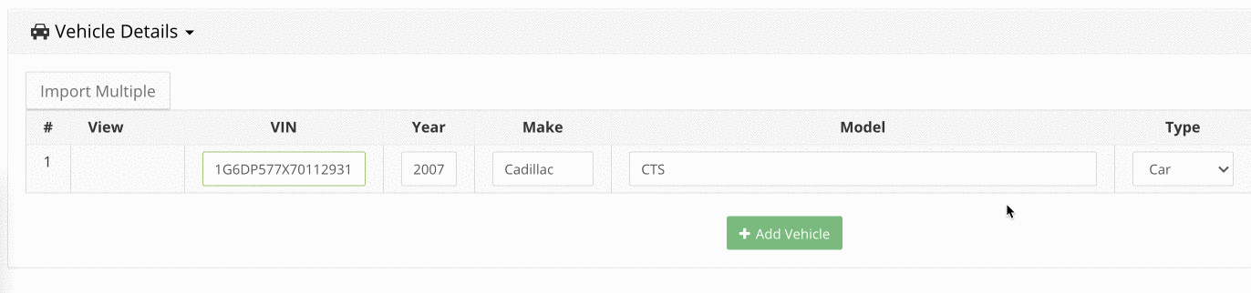 Paste the VIN number CarShipIO will auto-populate vehicle info: