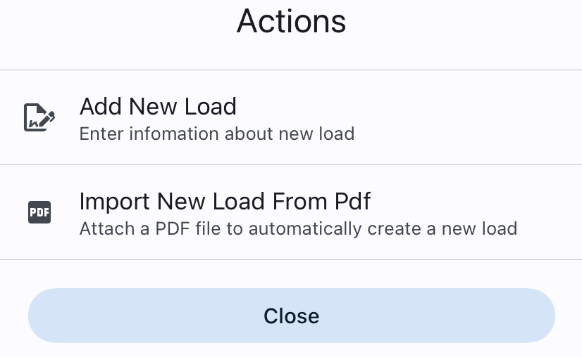 This guide shows how to manually create a new load or import it from a PDF directly in the Driver App. These steps are for drivers who already have app access.