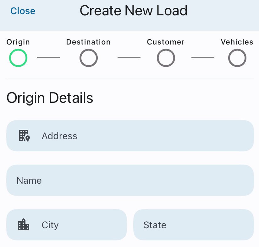Select Add New Load and Type in Origin and Destination details